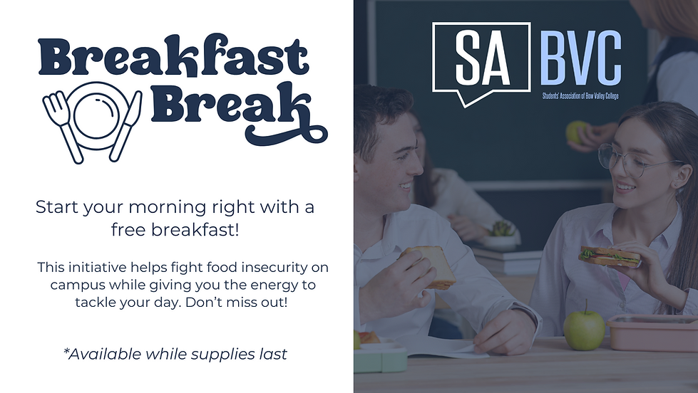 Start your morning right with a free breakfast served by SABVC! This initiative helps fight food insecurity on campus while giving you the energy to tackle your day.